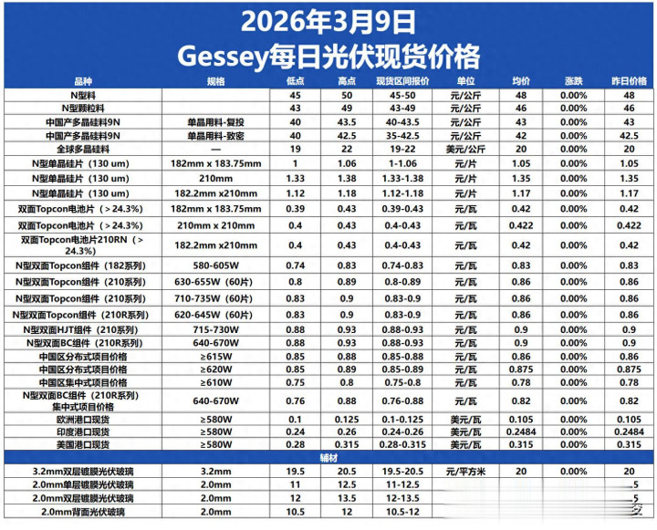 开云体育app Gessey: 3月9日逐日光伏商场行情