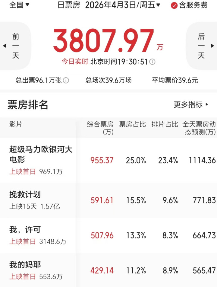 在《超等马力欧星河大电影》之后,则是《我,凤凰彩票welcome许可》和《我的妈耶》,它们刻下各自的首日票房王人还不到600万好意思元,举座显得很惨淡。
