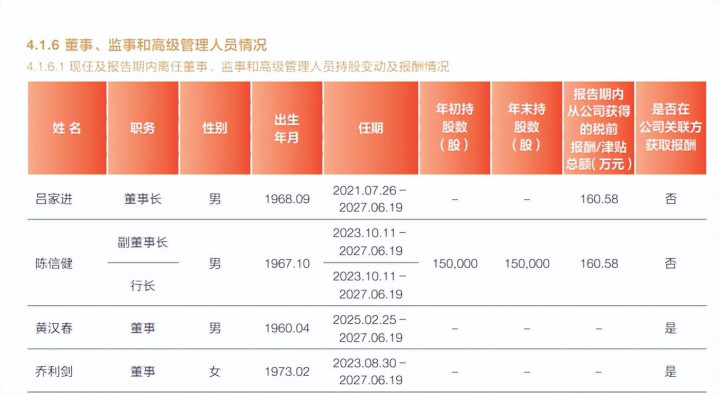 敷陈期内,公司整体董事、监事和高等贬责东谈主员本体赢得的酬劳统统为2,104.29万元(部分东谈主员薪酬尚未最终笃定,若有变动公司会进行补充暴露),同比增多471.63万元,董事长吕家进、副董事长/行长税前酬劳均为160.58万元,与上年161.4万元比较变动不大。