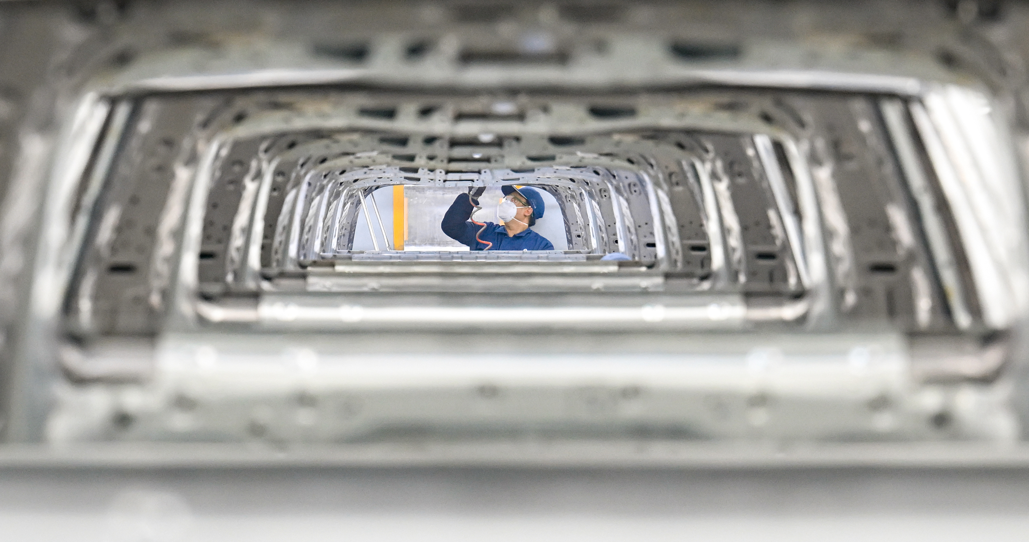 ▲4月8日,位于两江新区龙盛新城的赛力斯汽车超等工场,工东说念主正在焊合车间对车身进行锤真金不怕火、打磨。记者 张锦辉 摄