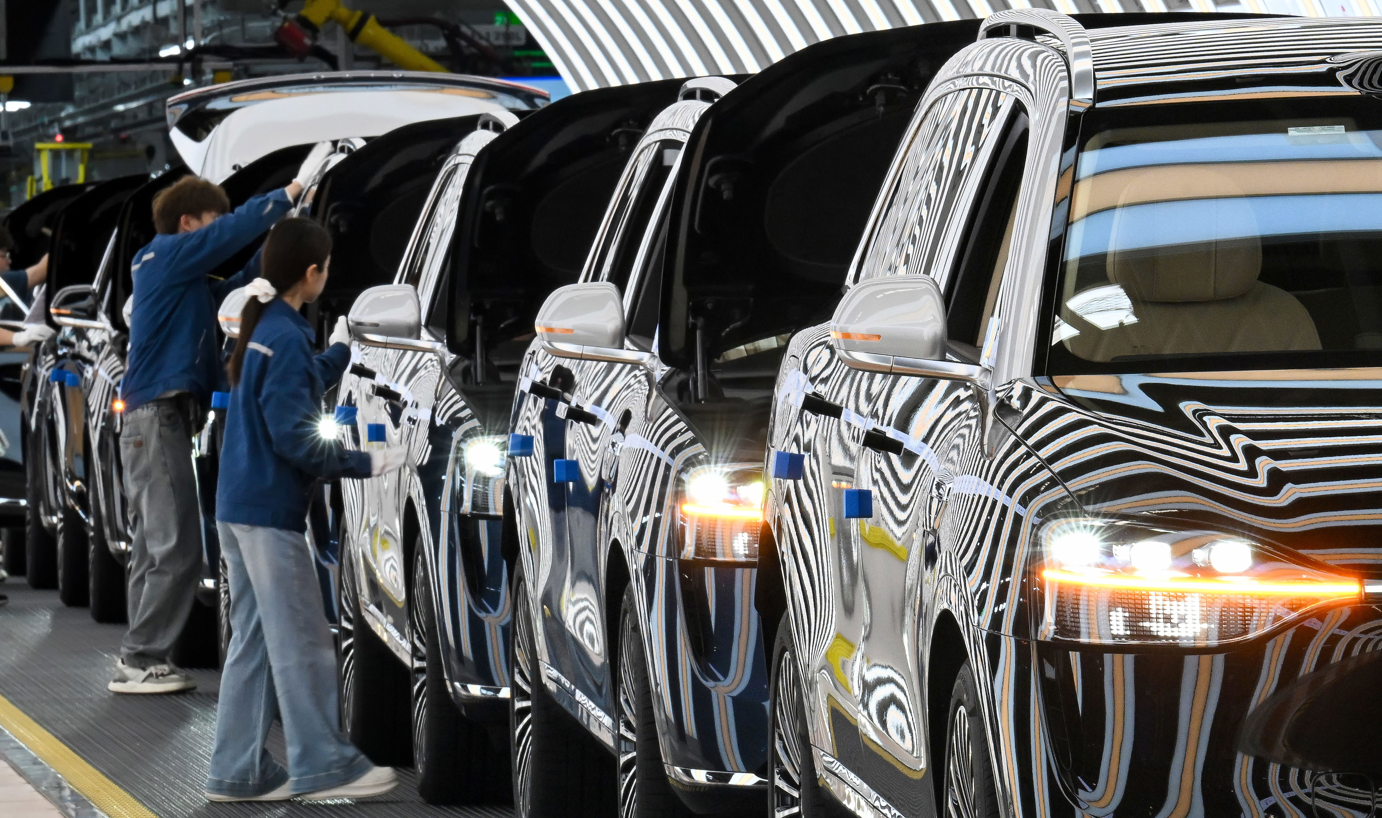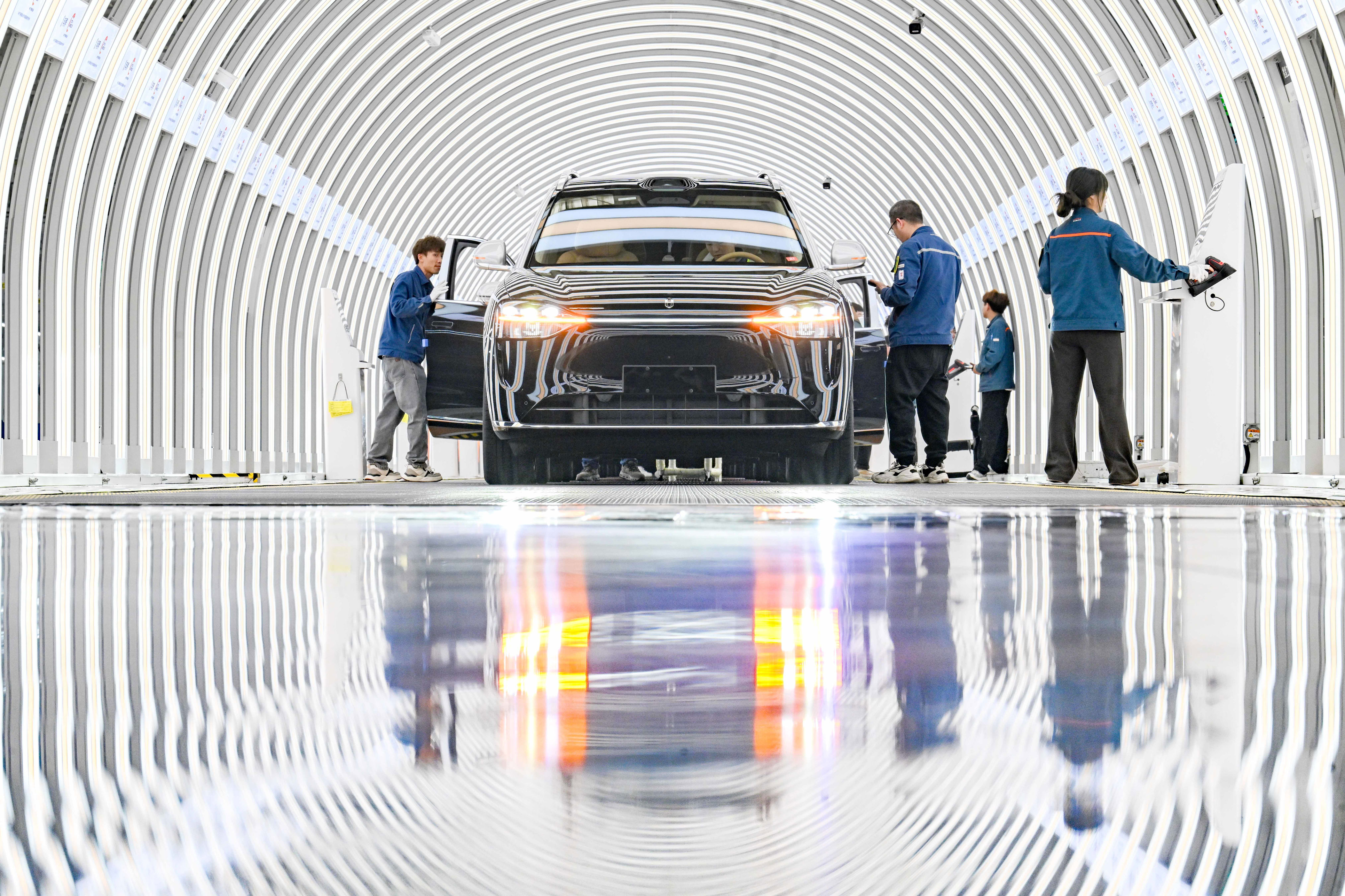 ▲4月8日,位于两江新区龙盛新城的赛力斯汽车超等工场,工东说念主们在完成线质料门进行车辆外不雅、内饰等检讨。记者 张锦辉 摄