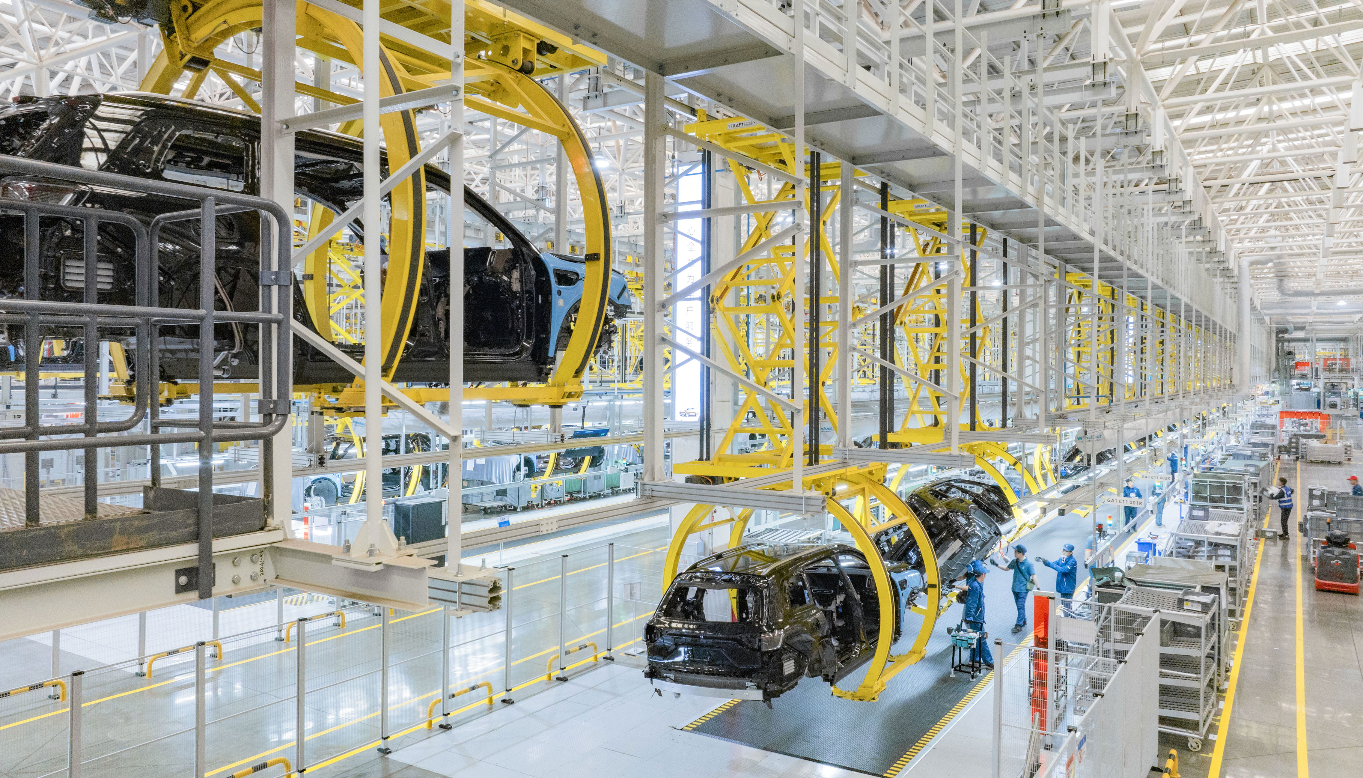 走进该工场,一股智能制造的气味扑面而来。焊装车间里,机械手臂精确地完成一起说念焊合工序;总装线上,座椅和轮胎在空中划过曲线,便已完好装置到车身上……当车辆驶过质料门,东说念主机协同功课,以最严苛的圭臬为下线前的车辆把关。