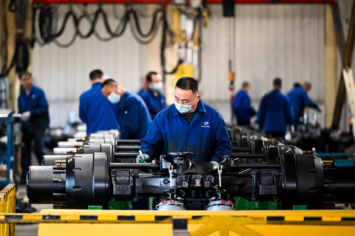 内蒙古朔方重型汽车股份有限公司内,工东说念主在责任。