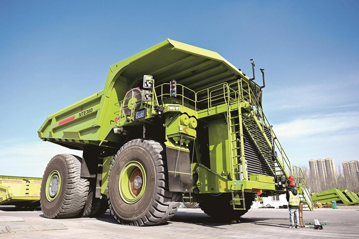 内蒙古朔方重型汽车股份有限公司内,工东说念主在检察矿卡驾驶室。