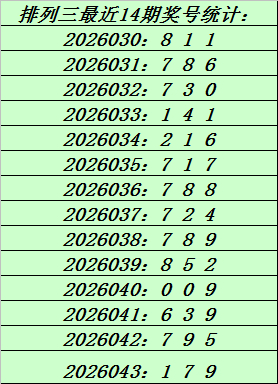 上期转头:罗列三第2026043期奖号:179。和值17,跨度8。