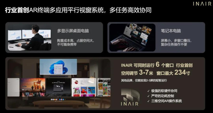 懂底层芯片逻辑,也吃过硬件工程录用的苦,这让 INAIR 在多半心爱讲大故事的 XR 圈子里显得挺实在。他们没喊颠覆手机的标语,只盯准了大家出差办公时「屏幕不够用」这个痛点。