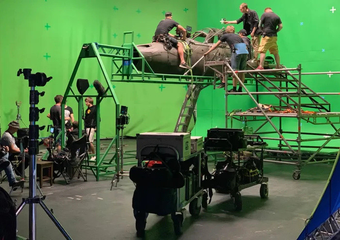 更绝的是,为了让演员入戏,剧组径直焊了一个 1:1 的实体座舱架在云台上!